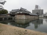 | 広島城に登城 広島駅から路面電車に乗って約10分で最寄りの駅に着いて城まで歩きました。二の丸表御門から入り、天守を目指しました。向かう途中で日露戦争時に明治天皇の大本営が移され、その遺構を見ることができます。天守に着いて中に入ると博物館になっていました。広島城天守から原爆ドームが見えて、原爆と広島城の関係を知ることができました。スタンプは一階の売店にありますが、小さな売店のためスタンプを押す場所が狭く、団体でスタンプを押す人たちが行列を作っていました。もう少し、広く作ってもらいたい。 |