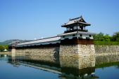 ・濠に囲まれた本丸。武将隊の人が入口で迎えてくれた。二の丸の内部は無料で入れる。太鼓も叩ける。 |