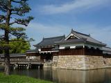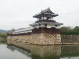 | 広大な敷地から現在残されている、内堀に囲まれた二の丸と本丸を見学しました。 本丸への入口となる二の丸へは復元した御門橋、表御門から入ります。ここは無料です。 二の丸内には、表御門からつながって、平櫓、多門櫓、太鼓櫓、が復元されています。 広い内堀に浮かぶ二の丸は、城南通りからの、良い写真スポットです。 二の丸は本丸と土橋でのみつながっています。その土橋上にいると、人間慣れした雀や鳩が寄ってきます。本丸にある店の人に聞いたところ、鳥に餌をやる人がいるとのことで、公害とは言わないが、困っているとのことでした。広い本丸は、下段と上段に分かれ、上段の奥の端の小高い丘に天守閣が有ります。天守閣のみ観覧料が必要です。 |