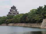 | 小雨の降る中、登城しました。 周囲に巡らされた堀がとても美しく、天守もきれいに見えました。 大きな天守が原爆で一瞬にして倒壊した写真をみて、原爆の威力 のすごさを実感しました。 戦争で多くの城が焼失・倒壊したことが残念でなりません。 |