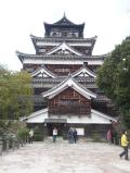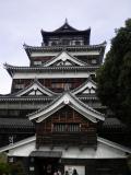| 24城目 前日は宮島を観光しました。世界遺産航路を利用し、広島平和記念公園へ。 天守は原爆が落ちるまで現存していただけに、なんとも残念。それでも、天守を中心とした二の丸の櫓、橋などがきれいに整備されています。 天守の中にも入ることができ、広島の市内を一望できます。市内はビルなどが多く立ち並んでいました。被爆からの広島の街の復興ぶりに、自分も励まされたような気がします。 |