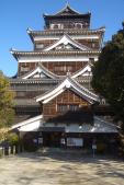 | 姫路城の前の駐車場に車を停め、始発の普通電車に乗り込み広島に向かう。 広島に10時前に着く。4時間30分の長旅だ。 広島城は2度目なので感動もなければ新鮮味もない。 スタンプだけが目的。天守閣の中をまわり、敷地内を一回りする。 3連休の真っ只中で冬休みも終わりになるので子供連れの観光客が 多かった。 人に酔いそうな感じだったので早々に立ち去る。 天気が快晴だったのは最高のプレゼントだった。 |