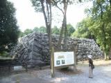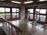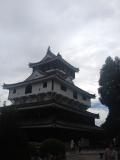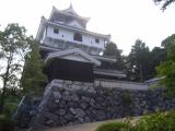 | ロープウェイ乗り場の真横の無料駐車場に車を停めて行きました。ロープウェイを降りて、なだらかな舗装された坂道を10分ほど登ると岩国城がありました。天守の東からは錦帯橋、南西の方角には新岩国駅が見え、新幹線が通るのが見えました。残念なのは、天守の外にスズメバチが巣を作っているとのことで、窓が閉められていること。確かに、窓の外にスズメバチが飛んでるのが見えました。 |