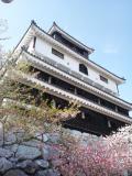 | 郡山城からバス→電車→バスと乗り継ぎ岩国城址へ。 錦帯橋・ロープーウエイ・岩国城のセット券(930円)を購入し、いざ登城。 本日は快晴で場内の桜も5分咲きで、花見気分で登城。 さすがに郡山城と違って人出が多く、団体客も結構いました。 お城は岐阜城と同じような感じで、ロープーウエイ駅からの距離もちょっと 短いくらいでした。 |