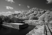 36城目。2025年11月100名城攻略バイク旅。明治政府の「廃城令」により全国で最も早く解体された長州・毛利家の居城跡。堀と石垣を残しすべての建物を撤去。城内は公園として整備されているが訪れる人も少なく、立派すぎる堀と石垣の佇まいが、却って寂しさを感じさせている。 |