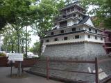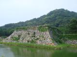 | あいにくの雨天でしたが、登城してきました。 天守跡は指月公園内にあり、よく整備されていると感じました。 春に来れば桜がきれいなんでしょうね〜 しかし、私が行ったときは、夏のイベントで名探偵コ○ンの 立て看板が何箇所か設置してあり、折角の景色が・・・ |