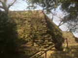 | 香川でレンタカー借り出発。1時間半で到着。駐車場は有料で310円。 しかし休日。駐車場の人にスタンプ借りる、見るからに失敗しそうなスタンプで嫌な予感がしたが予想通りにじんだ。 博物館は休みだが本丸跡は普通にみれる。 徒歩5分で本丸跡に到着。石垣を堪能して所要時間40分、石垣以外何もない。 |