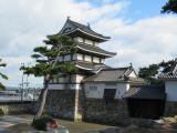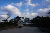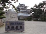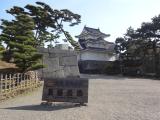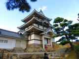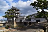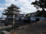 | 玉藻公園駐車場に駐車。駐車場からは、「艮櫓」が堂々と建っています。旭門(大手門)で入園券(200円)を購入し、スタンプを押印。門をくぐると右手には、石垣をトンネル状に構築した珍しい「埋門」があります。被雲閣・庭園を見学後、しばらく行くと、月見櫓・薬医門形式の水手御門(重要文化財)・渡櫓があり、海に出られる仕組みがよく分かります。 さらに、水門を過ぎると二の丸跡、鞘橋を渡ると石垣修理が行われた天守閣跡に辿り着きます。地元では天守の復元を目指しているそうです。(香川県) |