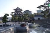 | 31城目。無料の玉藻公園駐車場に駐車。更に正月三が日は200円の入園も無料。東門(大手門)から入ってすぐに艮櫓(うしとらやぐら)がある。艮(丑寅)とは北東の事で、これは東ノ丸の北東の隅櫓として建てられたことを知る。 天守台も最上段まで積み上がったようなので、この上に天守閣が復元されるのが楽しみです。 |
