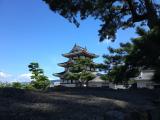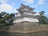 | 丸亀城に続けて訪れました。ここは三大水城の1つであり、濠に海水が引かれているのが特長です。ただ、お城というよりは城趾公園(実際に玉藻公園という名称です)で、散策には手頃な公園です。 天守は失われてしまっており、現在、復元に向けての作業中です。天守台の石垣が積まれており、今は展望台として上がることができます。この展望台から濠を見下ろすと、濠を巡る舟に合わせて、えさをもらおうとついて回る黒鯛の姿も見ることができます。他にも重要文化財の月見櫓、渡櫓、水手御門など見所もたくさんあります。 |