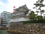 | 高松駅から徒歩10分くらい。天守台が復元されています。海城らしく、堀には鯛が泳いでいます。現存の櫓は外からも中からも一見の価値あり。 |