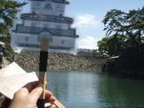 | 丸亀城から車で40分程。駐車場無料。 海水を引いた三重のお堀が素晴らしい。 木の橋を渡って小島のような天守台へのぼりました。 スタンプもキレイでした。 |