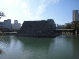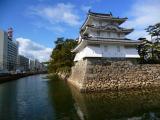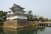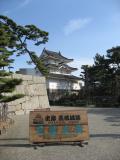 | 45城目! 中津城、今治城とともに日本3大水城の1つですが、海水を引き入れた城で水位調整の水門があり、100%海水の堀はここだけらしいです。だから堀には鯉でなく鯛が泳いでいました。広い敷地はよく整備されていましたが、高知城に比べると城跡としては少し見どころに欠けると思いました。天守閣跡への鞘橋は工事のため立ち入り禁止となっていたのも残念でした。天守閣の復元?の話もあるそうですが、ぜひ再建できることを期待しています。 |