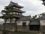 | 78城目 次男が友達と登城。城の西側から登城。 堀には海水が入っており、堀で鯛の餌やりを体験。 天守台は工事中であった。水手御門は船が直ぐに着けられるようになっていた。 2015年9月15日 妻と2人で登城。 山越うどん、金毘羅宮参拝後に登城。玉藻公園駐車場から艮櫓が良く見える。その後旭橋を渡り旭門より入城。桜御門跡が工事中のため迂回路を通り披雲閣へ、披雲閣庭園を抜け月見櫓・水手御門・渡櫓を見学。海と水堀をつなぐ水門も通り二の丸跡へ、木造の鞘橋を渡り本丸天守閣跡に到着。天守再建の計画があるとのことで是非とも再建天守を見て見たいものだ。 艮櫓、月見櫓・水手御門・渡櫓はいずれも破風や石落などが付けられ他の城の櫓よりも装飾性が高く豪華で城全体が気品に溢れ譜代大名の城の風格が感じられた。 堀には鯛が数匹泳いでおり、海城であることが実感出来る。 |