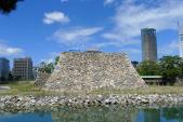 | 水城。櫓が配置され。天守台が整備中。 |