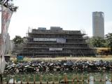 | 天守台石垣工事中。 |