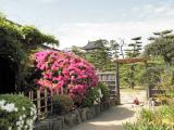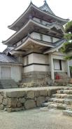 | 雨の中訪ねた。天守台の修理中であった。北側(?)の櫓の下は、昔は瀬戸内海に直結していた跡が見られて、興味深かった。 |