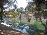 | 堀の水は海水とのこと。あっ、鯛がいる!願掛けエサやりなるものがありました。 |