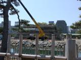 | 朝6時からの登城。 天守台の石垣は復元中みたい。その天守台をコの字に取巻く堀がよい。 水都なんだと気付かされる水門だったり、堀の水の満ち引きが見えたりします。 |
