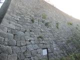 今治城から移動して登城しました。登城路がスロープではありますが急角度でした。石垣も崩落した部分は大規模であり、修復中でした。 |