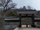 | 平日のお昼前、丸亀駅から徒歩で向かいました。駅に着いた頃から冷たい雨が降り出して、傘をさしての城巡りです。右手に一眼レフを持ち、左手に傘をさして、背中のリュックも濡らさないように行動するのはとてもつらい。ただ、お城の大手門までの10分強の約7割をアーケード街を通れるので、この点は助かりました。 大手の二つの門をくぐって見返り坂を登ります。皆様の投稿ほどには私にはきつくは感じられませんでした。二日前に淡路島の洲本城登城で息を切らしたせいもあるでしょう。 見返り坂終了後は「最短ルート」で二の丸に入り本丸へ。帰りは二の丸から「石垣満喫ルート」を通って下城しました。 天気が良ければ搦手口方向にもゆきたかったのですが、雨には負けてしまいました。 100名城スタンプは天守閣入口で押印しました。200円の入城料を払おうとすると、「スタンプだけなら頂戴しません。」とスタッフの男性が紳士的な対応をしてくれました。 現存天守は貴重ですが、丸亀城はやはり石垣の高さが魅力的です。 冷たい雨の平日が理由でしょうが、滞在50分の間に、10名くらいの登城者にしか会いませんでした。 |