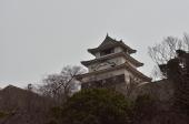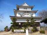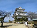 | 79城目 次男が友達登城。高松から一般道で40分で到着。 城の向かいの無料駐車場に駐車。 天守までの坂は急だが、天守からの眺めはすばらしく、 瀬戸大橋を望むことが出来る。 2015年9月16日 妻と2人で登城。現存天守9城目。 城の大手門の前に立つと天守を頂点に城山全体に石垣が見られその重厚感に思わず圧倒されてしまう。今までの城めぐりでも5本の指に入る名城である。三の丸北側の高石垣は算木積の美しい曲線美である。 三層三階の小振りの天守は、現存木造天守では日本一小さい天守であるが天守最上階からは瀬戸内海を一望することが出来る。他の櫓などが再建されれば素晴らしい城となるであろう。 |