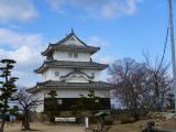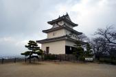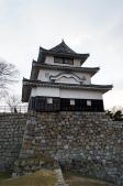 | 城内グラウンドの隣に無料駐車場有。車を置いてゆっくり登城。ゆっくりでないと登れない急な坂道。天守閣は遥か上。休み休み上ると、うわさに聞いた可愛らしい天守閣。現存天守の宿命(?)急な階段を上った先は360度のパノラマ。下から見上げる石垣に只々圧倒される。 |