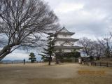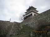 | 車にて登城。 資料館裏の無料駐車場に停めました。 この日は爆弾低気圧というのかな?凄い風が吹き荒れてました。 見返り坂下のおみやげ屋さんで入城料の半額券がもらえて、200円が100円になりました^^。 噂の坂は、なるほど、ツライ。高校生アスリート達はダッシュしてました。 天守は小さいけど現存天守で、いい感じ。 階段は急な上に長くて、久々に恐怖を感じました。 |