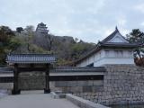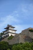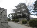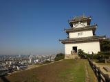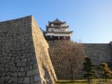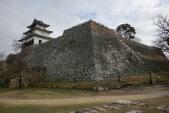 | 高松城から移動。市役所の駐車場に止めて時間の関係上一気に天守まで駆け登りました。きつかった。商売っ気がないのか係員が前から準備していて、四時ピッタリに天守の入場を止めます。石垣好きにはたまらない城です。ただ正面からだと電線などが邪魔できれいに写真が取れないのが残念でした。 |