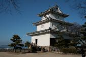素晴らしい石垣であり、現存天守で見ごたえ十分。天守から見る景色は遠くまで望める。翌日、帰りに瀬戸大橋の与島PAから丸亀城が確認できた。 |
