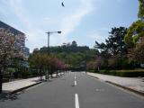 | 桜が咲き始め。坂を上り登城。眺めのいいお城。 |