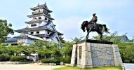 | ●城番号:079 18/200 (百名城:12 続百名城:6) 題して『2泊3日.四国(香川は行きません)、城しか行かないゾ!ツアー!』1日目第2登城目 能島城から車で40分くらいで到着。天気もよく、高虎公の銅像と城が映える!! 1番上からしなまみ街道が見えて海風が気持ちよかった。 ☆登城記念付あり ☆記念メダル:受付後ろ |