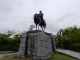 97城目 79番 今治城登城。この城で今回の四国征伐が終了する。四国最後の登城にふさわしい美しいお城だ。正面からもお堀越しに城のほとんどを見渡すことができる。復元された鉄御門をくぐると天守がある庭に入るが、さらに進むと正面の反対側から天守を望むことができる。裏側になるのか石段を少し降りるて振り返ると高石垣の上に建つ天守がすごく美しく、撮影スポットだ。 |