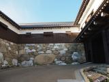 | 今治駅からバスに乗り今治城前のバス停を降りて最初に見えたのは… 改修工事で鉄骨が組まれシートが被せられている大手門側の櫓の姿。 2018年2月末くらいまで工事だそうです…。 全景は、水堀に沿って半周まわって搦手側から見るのがよいかと。 堀の水は海水が流れ込んでいるので、堀に生息している魚は基本的に海水魚ながら、 堀底から真水が湧き出している場所もあるので、淡水魚(メダカ)が生息している領域もあるということは興味深かったです。 天守閣1階にあるお手洗いには行っておいた方がいいですよ。 壁が江戸時代当時の石垣! |