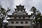 | 再建の天守。明治時代にお隣の神社所有になったものを、買い取り、整備。 順次再建されている。 石垣、堀は、江戸時代のものの現存。 |