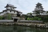 | 松山市から車で1時間と少しくらいで行きました。 海水を引いた堀は、海の魚がいます(見てませんけど)。 造りはわりとシンプルで、堀に囲まれた本丸に3つの櫓と天守があります。 天守は再建ですが5層6階でなかなか存在感があります。 スタンプは天守1階で、天守の中は博物館です。 |