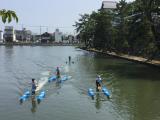 52城目。夏休みを利用して今日から3泊4日で、四国の9城を攻略する計画を立てました。今治城からスタートして、左回りに一四国一周します。大変な暑さの中、今治城ではお堀で水上自転車による競争のイベントが行われていました。 夏らしいイベントで良いですね。日本三大水城の一つだそうですが、お城が市民の憩いの場として親しまれている感じがしました。 |