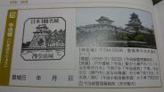 | 今治城管理事務所入口にて押印。 JR今治駅から乗るバスはコミューターバスで、小さい。 |