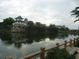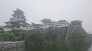 今治駅(列車の接近音は、瀬戸の花嫁)より、徒歩20分。内堀に海水を取り入れているんですね。天守と3つの櫓を見学できます。雨で残念。 |