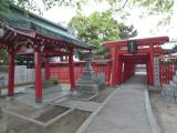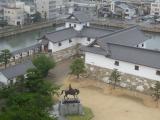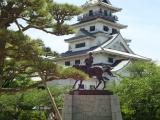 天守のそばに神社。藤堂高虎が馬に乗っているオブジェ。 |