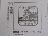 40城目。四国最後の城郭今治城。近くに高い建物が無く、良く目立つ城郭。資料舘、展示場などが良く整備されている。城郭入口にてスタンプゲット。 |