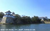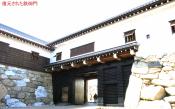| 今治城を訪れてまず気が付く事は、水堀が幅約60mにも 及ぶ広大な堀であることです。当時の鉄砲の装甲貫通 距離50mを意識して、まず水堀を隔てた戦いを想定して いるのです。 また堀の水のきれいさです。これは、現在も内堀に瀬戸内の 海水が流れこんでおり、水が出入りするので全国の城の中 でも水質の良い堀のトップクラスとの事でした。 平成19年に復元された鉄(くろがね)御門もなかなか見応えが あります。写真撮影をしていると、門の近くで通路に旗指物を 指しておられた方から、「どちらからですか」と声を掛けられました。 会話を交わしていると、当初の再建計画では、費用は6億円の予定 でしたが、幕末期の写真、発掘調査結果を基礎資料とし、そして 広島大学教授の指導などを受けて可能限り忠実な再建を行った。 結果、費用は10億円となったとの事でした。 きっと多数の市民の寄付を得て再建されたと思います。今治市民の 再建に掛ける心意気が感じられました。結果、大手側からの景観は 往年の威容を取戻し、これで城の風格がぐっと備わったのです |