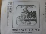 | 大雨のせいで萩からの東行きをあきらめ、関門海峡を越えて九州、四国ルートに変更し、今治へ。今治駅から歩いて今治城へ。駅から少し遠かった。城のすぐそばまではビルなどがあって、見えなかったが、城のすぐそばまで来ると全体的によく見え、かなり立派であった。天守閣でスタンプをゲット。城内スタンプラリーもあって楽しめる城であった。 |