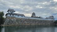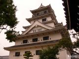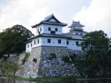 もともとの場所とは異なる形で無理やり建てられた天守は、なんとなく均整が取れているような取れていないような。このお城を綺麗に撮るには堀の外側から全体を納めるような形で撮らないと絵にならないようです。そうなると空がいっぱい入るので、青空でないと絵にならないという、撮影者泣かせのお城でした。 |