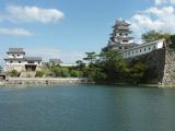 | 前日は金毘羅さん付近に宿泊。朝早く参拝し、徳島に少し戻り、祖谷渓、かずら橋、大歩危小歩危を見学後、お昼頃登城。車は堀沿いの有料駐車場に止めました。 広い堀と犬走りを見学。櫓や天守が再建されていていい感じです。 |