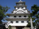 | 宇和島から高速道で。途中今治の市街で少し混んでいた。高松城より海城を意識した。夏、ピカーっとするほどのいい天気でも見学者は殆どいなくて貸切状態だった。城は新しくて、形もよかったが、真っ赤なジュースボックスがあり、マイナスポイント。(下から全景写真撮れねえなあ・・・) |