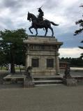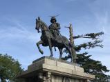 | 仙台駅からるーぷるで向かいました。仙台城跡で降りるとすぐと思っていたら、護国神社しか見えなくて、人に尋ねたら見聞館の前を通り過ぎていました。本丸跡から町並みを眺めました。伊達政宗の銅像が目立っていました。 |