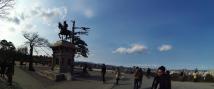 | 青葉城に来ると自然とあの歌が頭の中に流れてきます。お気に入りの伊達政宗像と記念撮影。 |