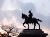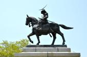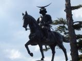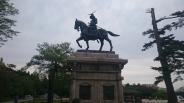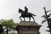 | 城跡ですが、仙台市内一望の景色は抜群。伊達政宗公の凛々しい銅像が仙台の街を見守っていました。 |
