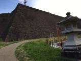 | 多賀城を出発し朝1番に登城。30年ぶり。GW中でも朝のうちは静かなもの。石垣の大きさから、とても大きな城であったことがうかがえる。伊達の殿様は偉大である。 |